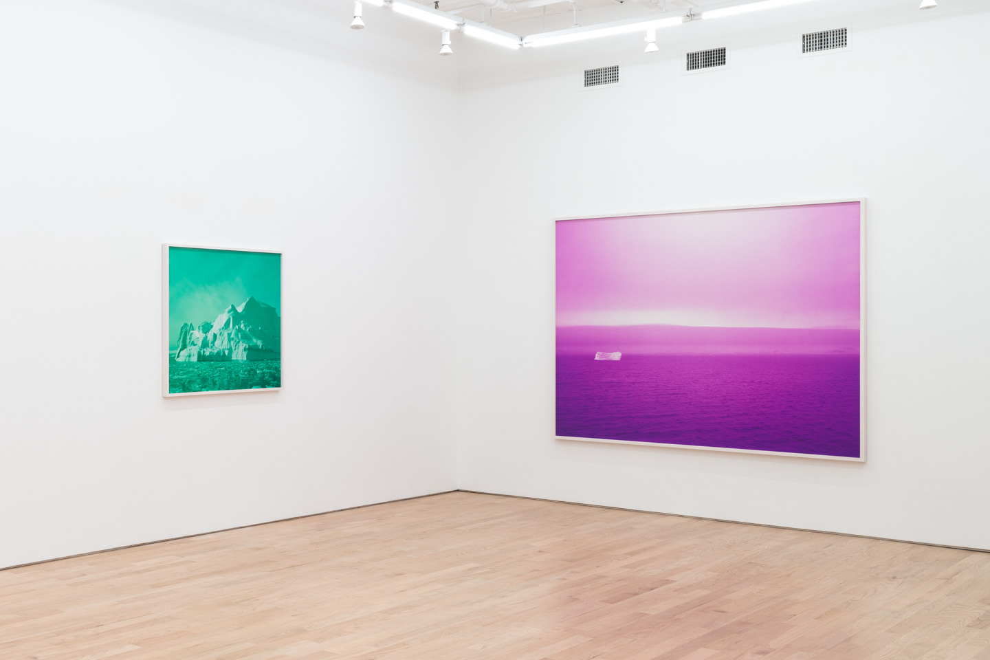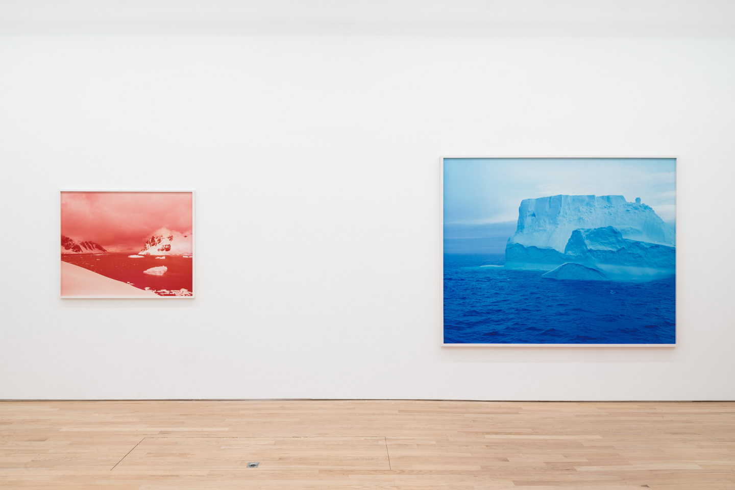 Sherry’s longstanding engagement with the American West and humanity’s fraught relationship with nature takes an expansive step forward as he turns his lens southward to the glaciers and icebergs of Antarctica. In Blue Ablation, a title which references the destruction of glacial ice and, relatedly, our own bodies, the artist pairs large-format analog photographs, rendered in vivid monochromes, with abstract paintings inspired by the atmospheric conditions and ice drifts of this enigmatic landscape. Capturing both Antarctica’s sublime beauty and its rapid transformation under global warming, Sherry moves beyond documentation to confront change itself. This new body of work engages legacies of exploration and exploitation while deepening Sherry’s own focus on queerness, spirituality and our survival as a species.